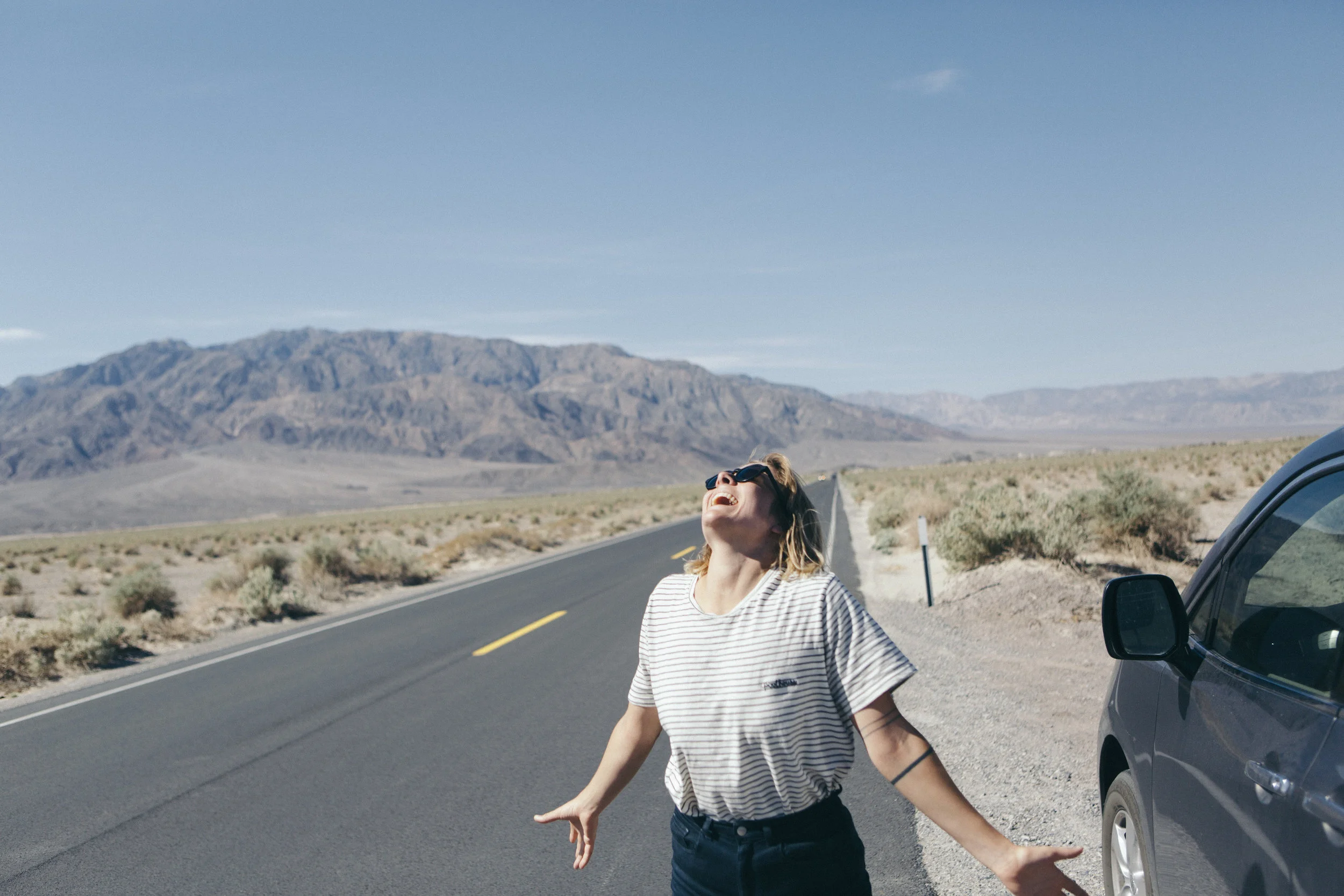 We left Santa Barbara in the morning heading east towards Death Valley. We decided to take a scenic route through Los Padres national forest. After heavy rain people told us that the road had been blocked by landslides for weeks, but everything seemed to be cleared when we arrived and we had everything to ourselves. It was easily one of the most scenic drives I’ve ever taken, and we stopped whenever we could just to soak it all in. It was so scenic that we forgot to refuel on gas and spent the next few hours fearing that we would run out. But when we found this bend we just parked and went for a little cruise down the hill. Don’t let this picture fool you, those roads were so bumpy that almost immediately after this was taken, I fell on my face. But we never ran out of gas! Perfect Day, indeed.